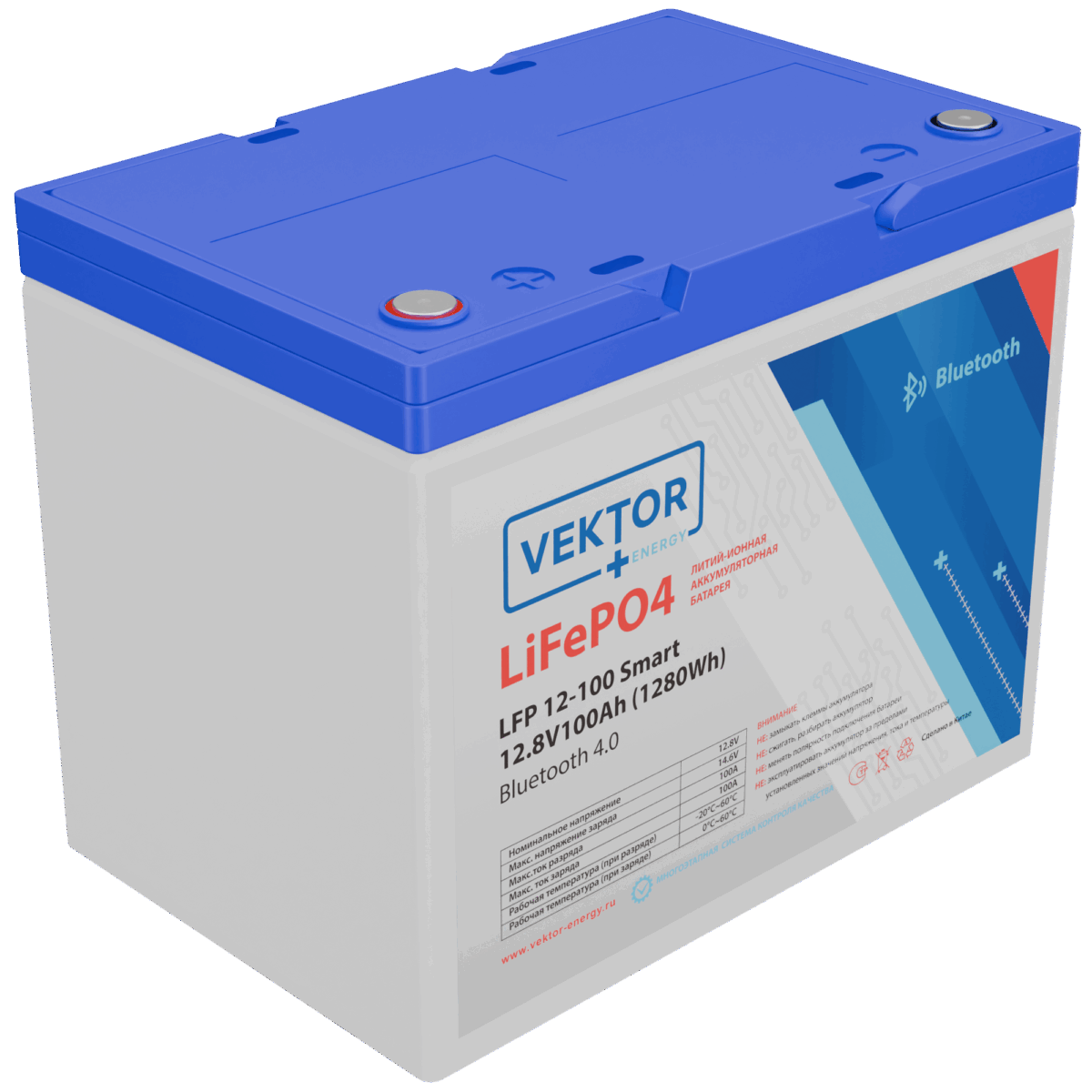 Батарея Vektor Energy серия LFP, LFP 12.8-100, напряжение 12.8В, емкость 100 Ач, макс. ток разряда 110А, макс. ток заряда 100 А, литий-ионная аккуумуляторная батарея, клеммы M8, ДxШxВ 258166215 мм., вес 9,9 кг., срок службы 15 лет / LFP 12.8-100 (12.8В / 100 Ач) / Батарея Vektor Energy серия LFP, LFP 12.8-100, напряжение 12.8В, емкость 100 Ач, макс. ток разряда 110А, макс. ток заряда 100 А, литий-ионная аккуумуляторная батарея, клеммы M8, ДxШxВ 258166215 мм., вес 9,9 кг., срок службы 15 лет
