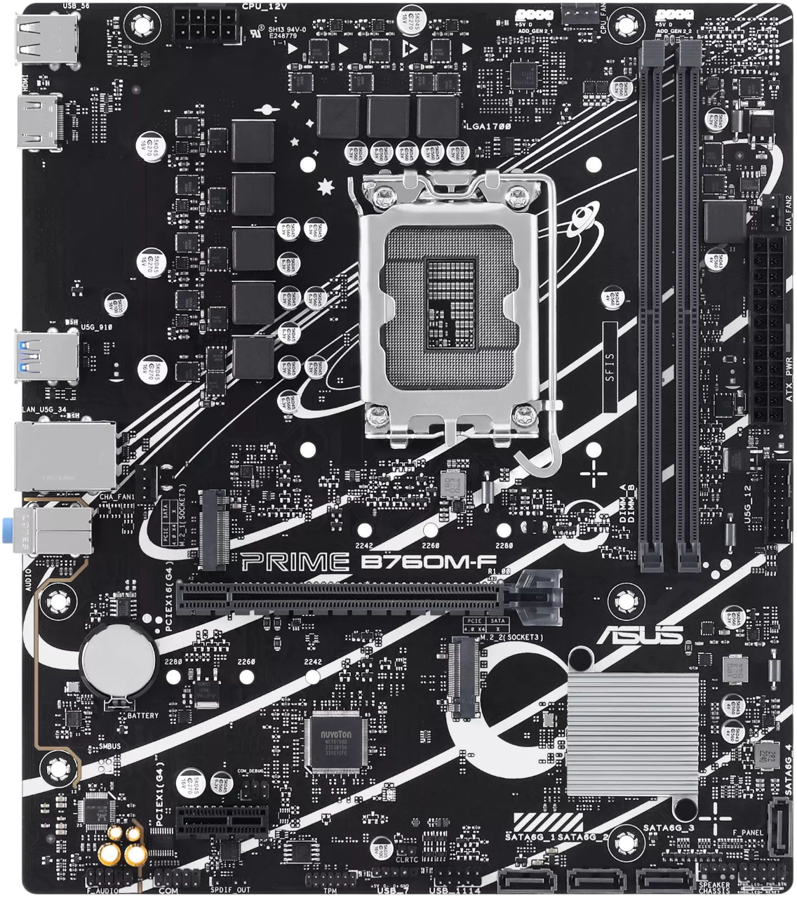 ASUS PRIME B760M-F – идеальное решение для сборщиков компьютеров, желающих построить мощную и универсальную рабочую станцию или игровую машину. Отличаясь продуманностью конструкции, высоким качеством исполнения и широкими возможностями по настройке, эта материнская плата станет надежным фундаментом вашего персонального компьютера.