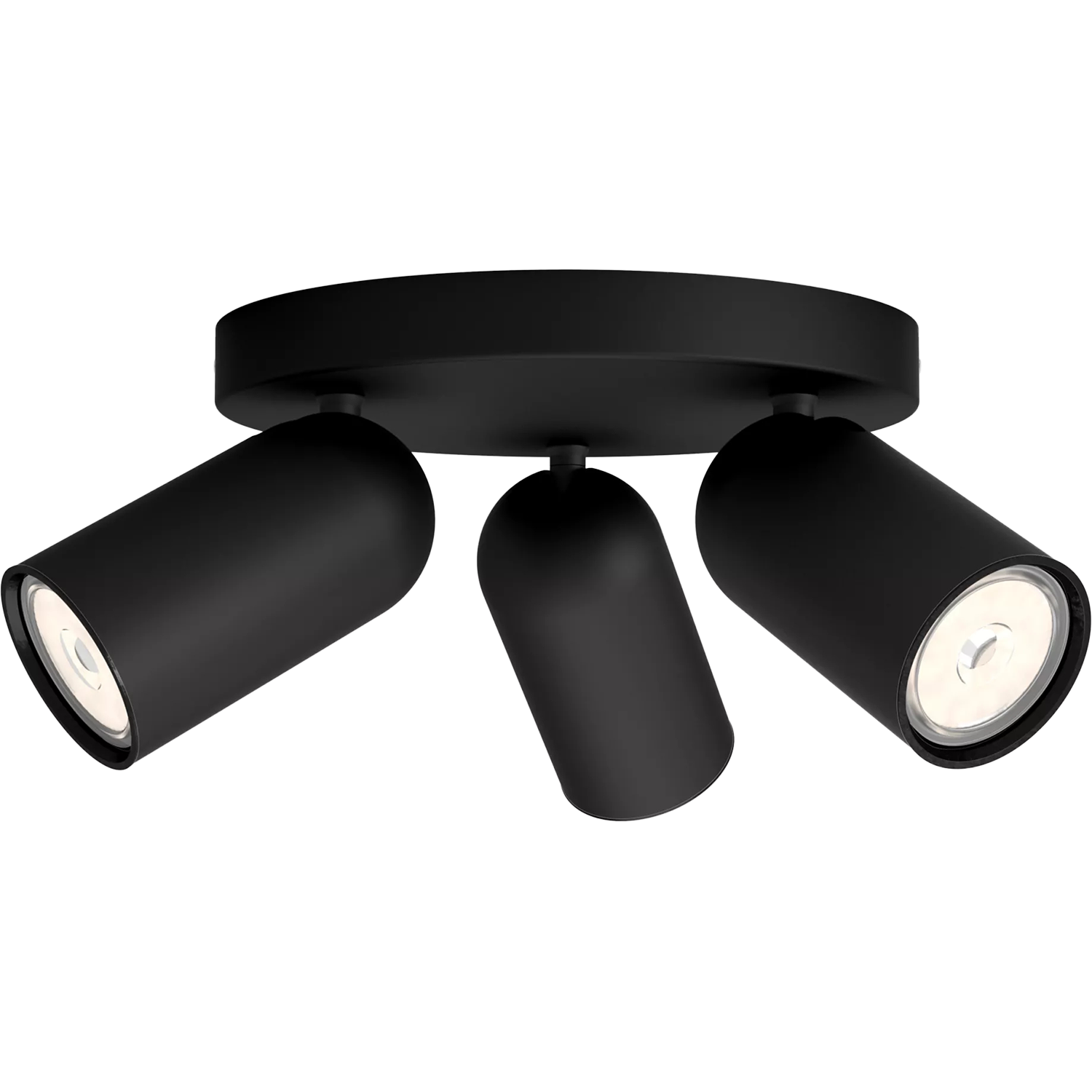 Светильник оснащен тремя патронами типа GU10, расположенными на круглой платформе. Такая конструкция обеспечивает распределенное освещение, позволяя комбинировать или направлять свет от нескольких ламп для достижения нужного светового рисунка на поверхности.