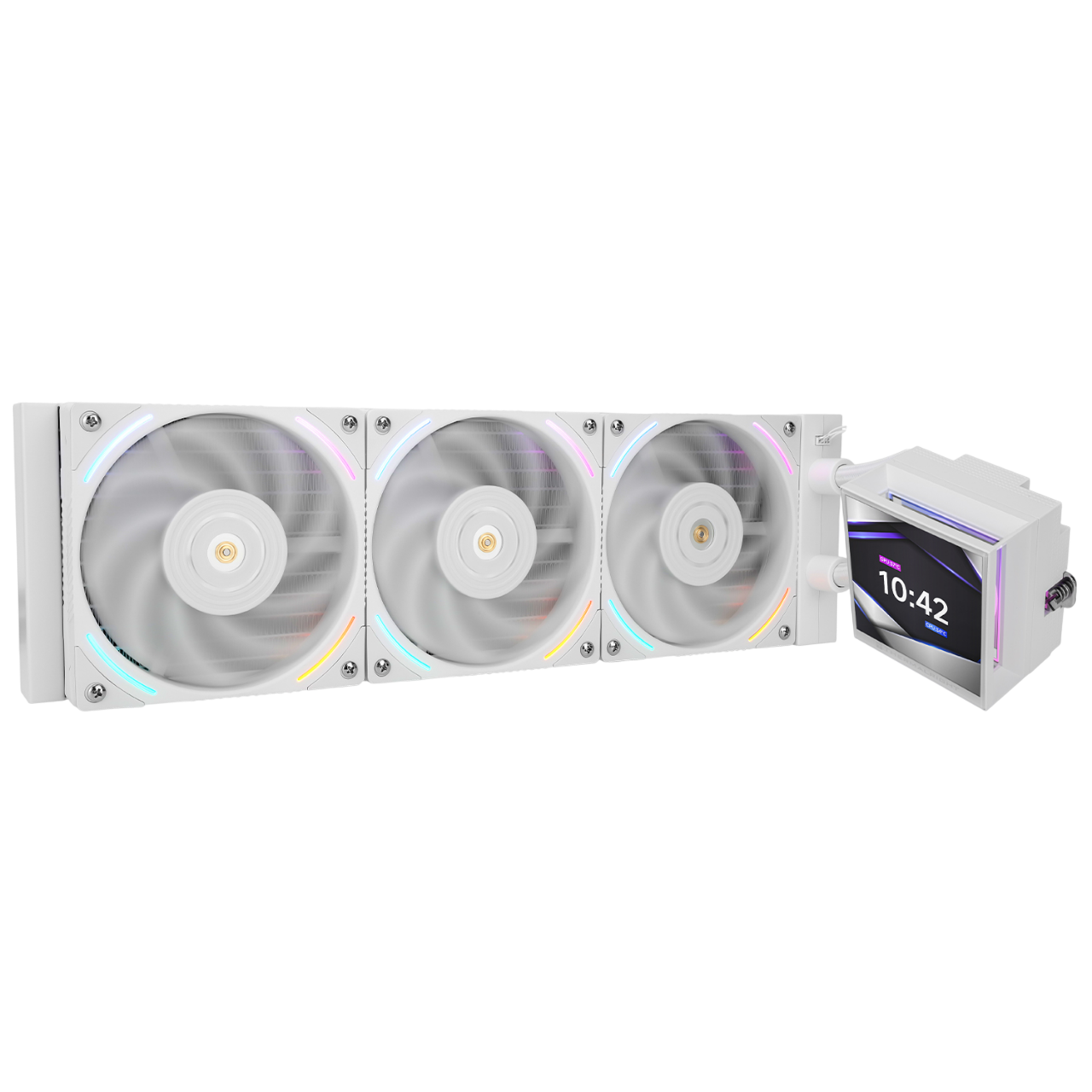 Водяное охлаждение для процессора / Thermalright H-VISION-WH-360-ARGB / Водяное охлаждение для процессора/ Water Cooling System Thermalright Hyper Vision 360 (360mm, LED, White, ARGB/ Fans 3x120mm, 69CFM, 27dBA, 2150RPM/ Pump height 68mm, 6400RPM, Rad thickness 27mm/ S 1700, 1200, 1851, 115X, 2011, 2066, AM5, AM4)